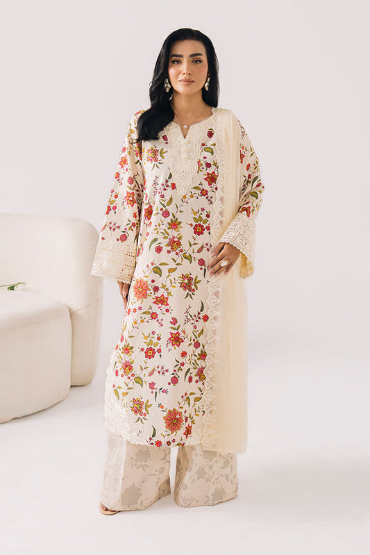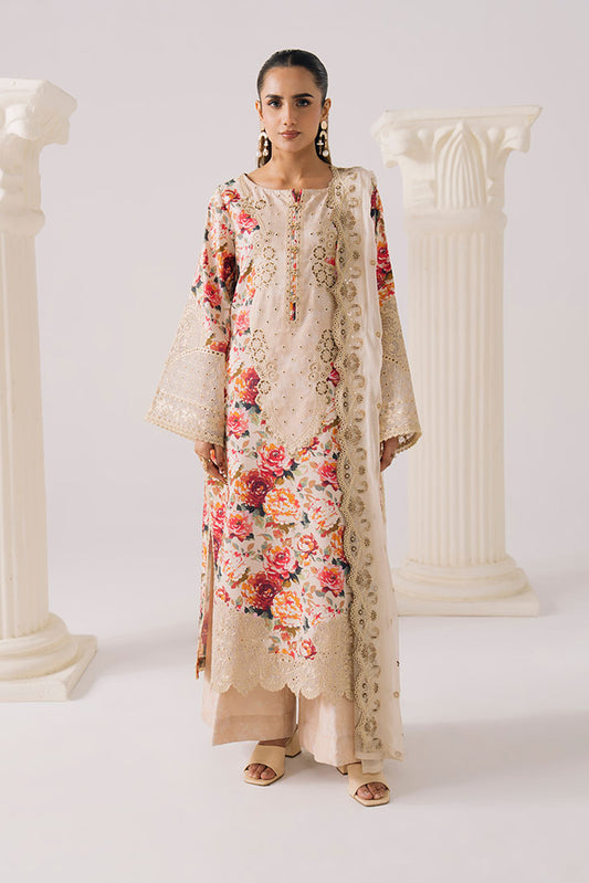 Embroidered organza neckline. Printed lawn front. Printed lawn back. Printed lawn sleeves. Printed silk dupatta....