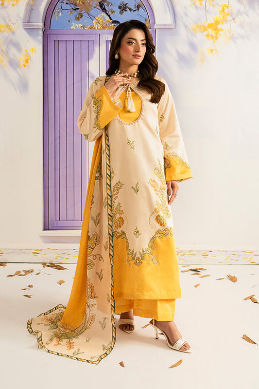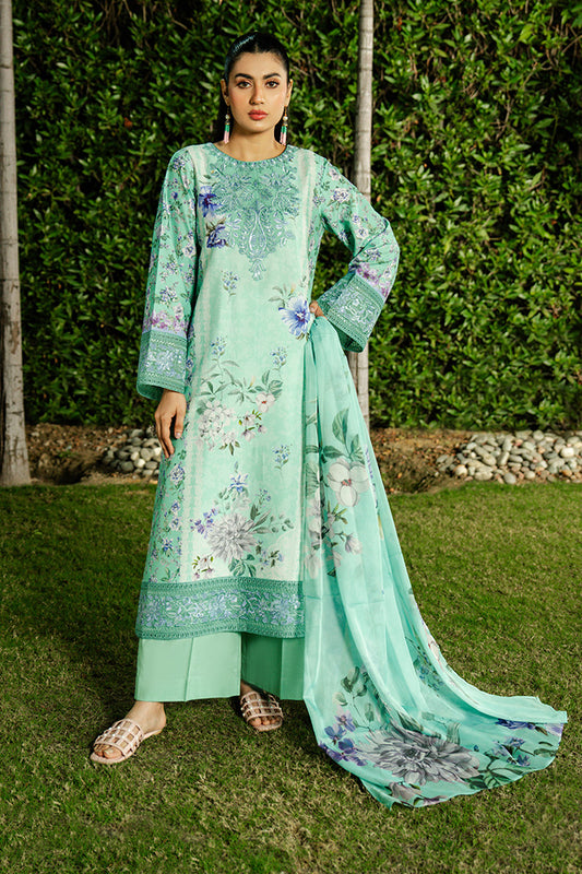 Printed lawn shirt enhanced with embroidery on neckline and sleeves. Embroidered chiffon dupatta. ...