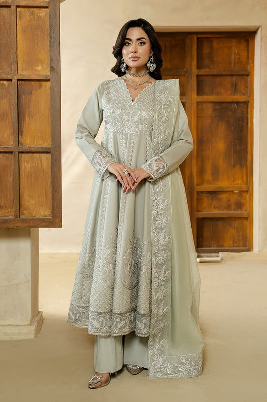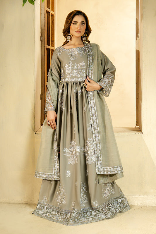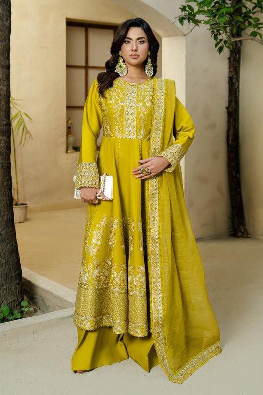 Embroidered cotton satin shirt. Embroidered chiffon dupatta. Plain cotton satin trousers. WASHING INSTRUCTIONS:Dry Clean Only.Do...