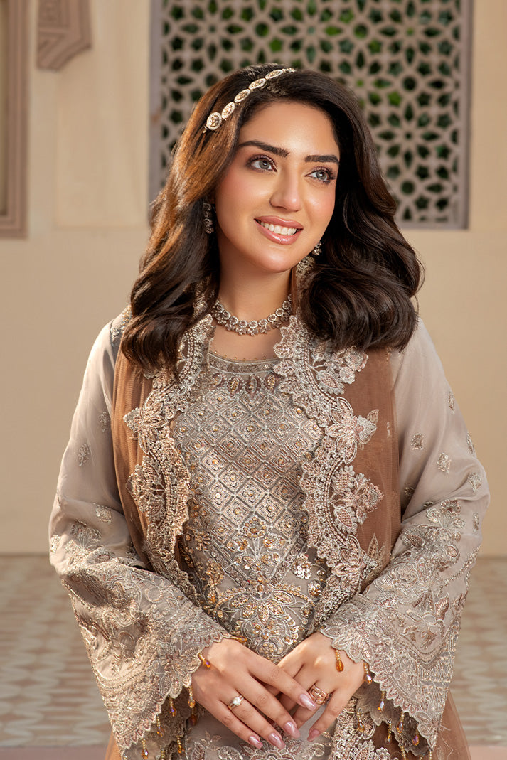 Embroidered net dupatta.