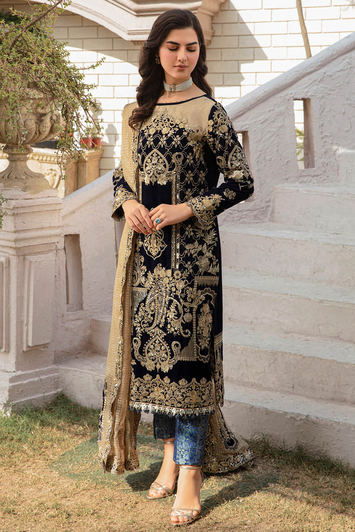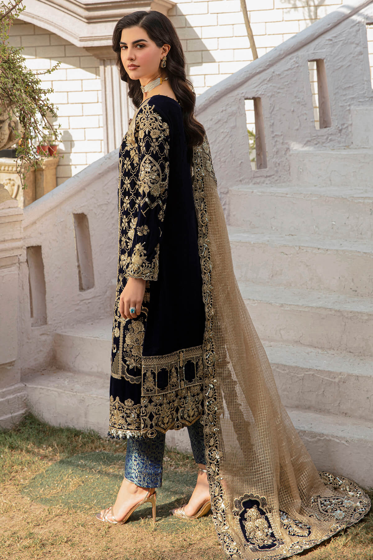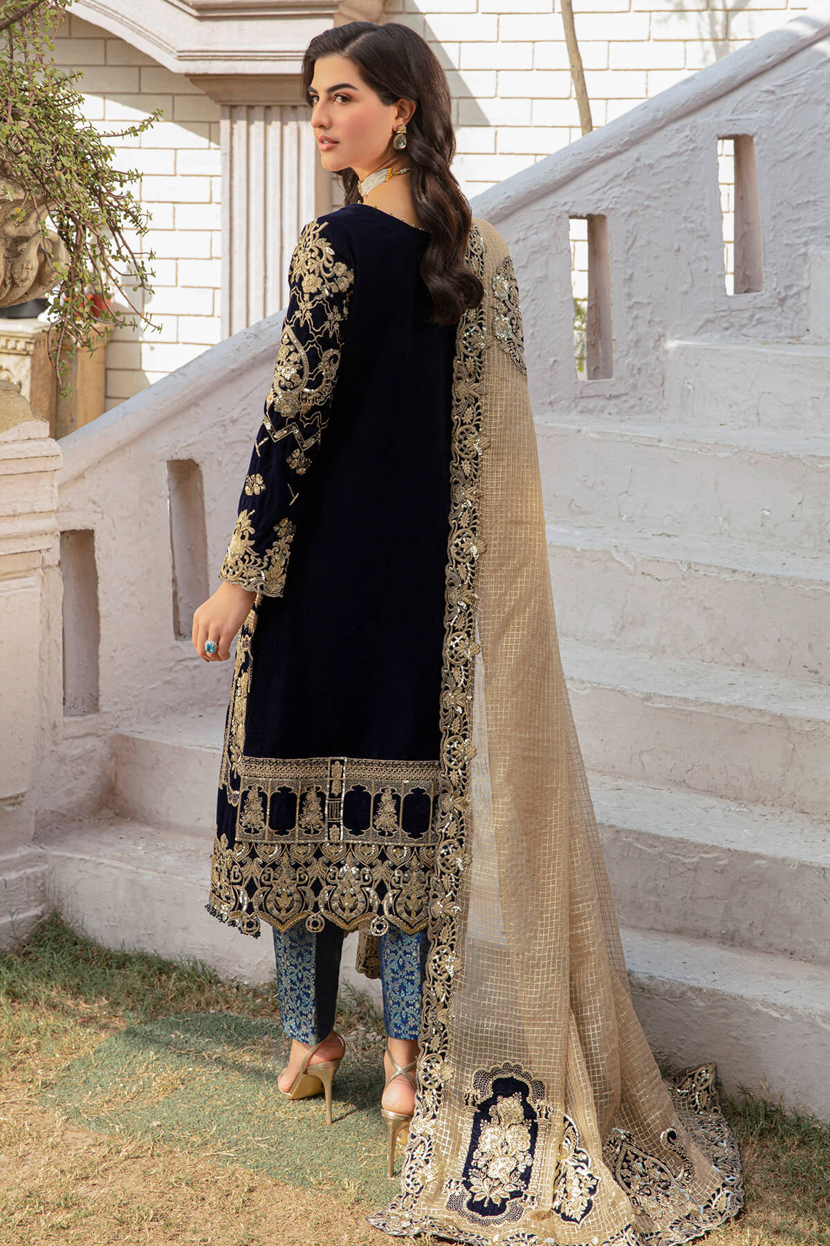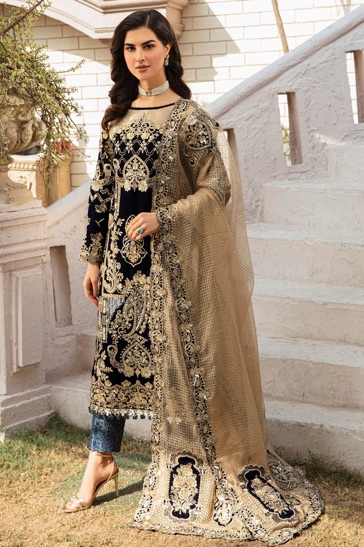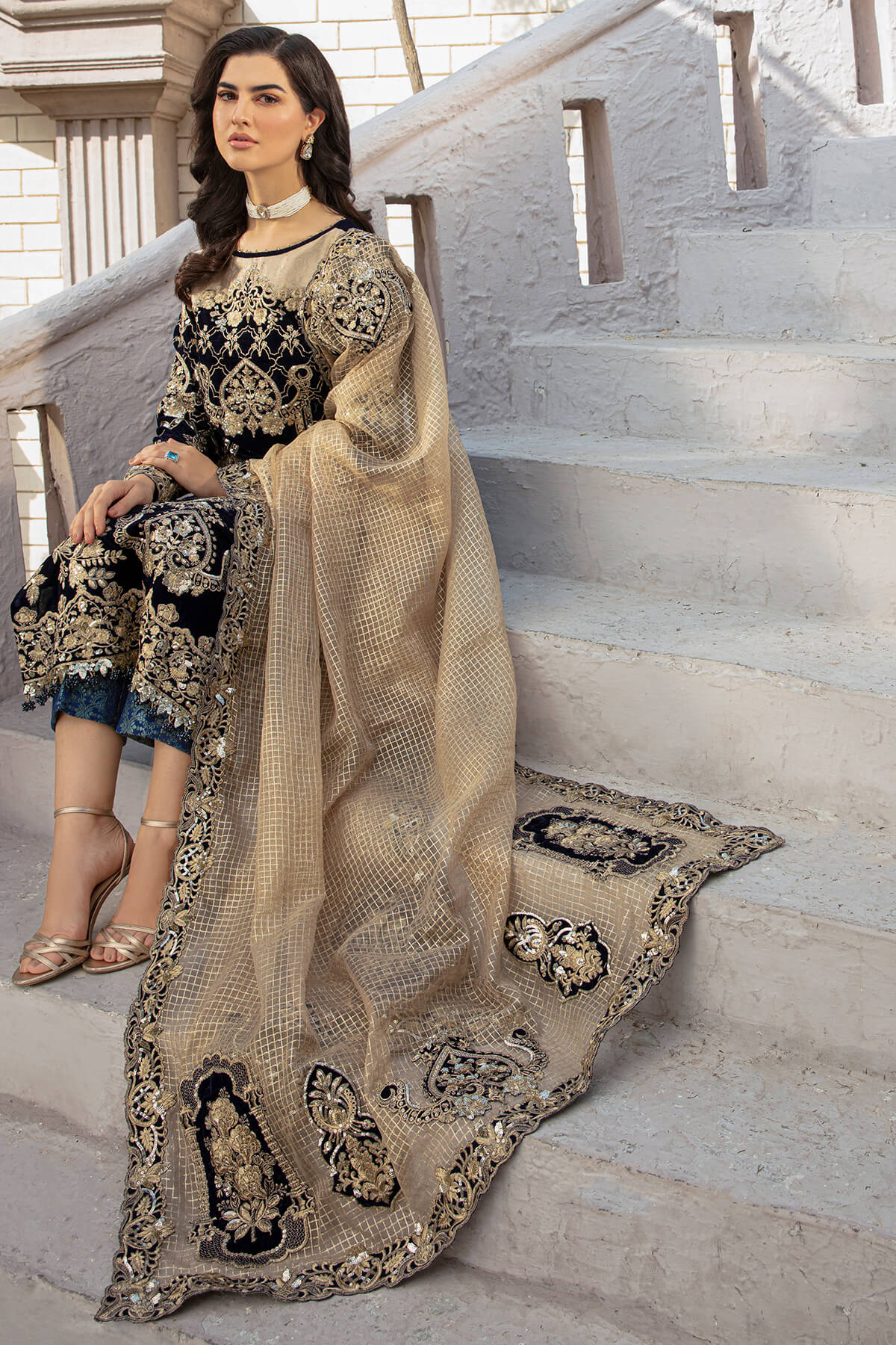 Zarri organza with embroidered velvet border & motifs for dupatta:
