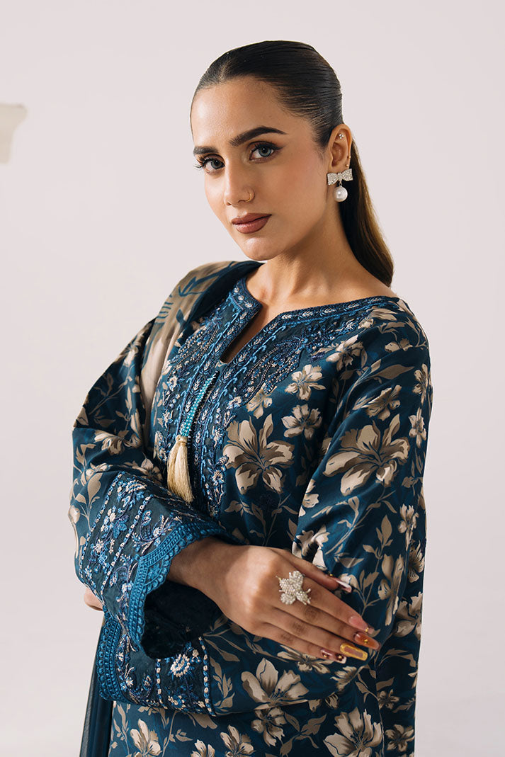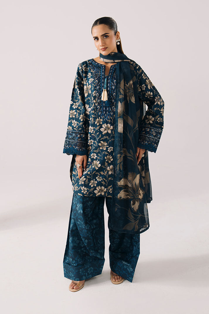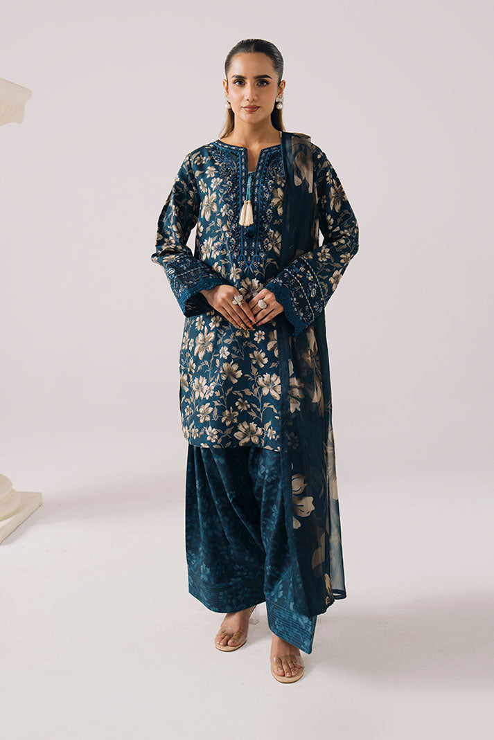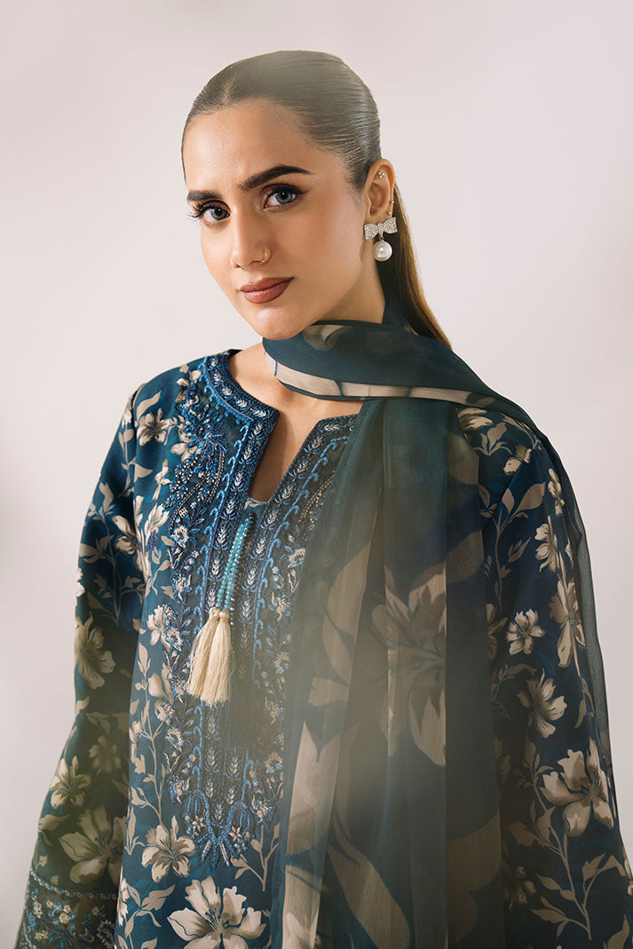 Petal Haze in blue is a refined printed lawn suit designed for effortless summer elegance. The printed lawn shirt features soft floral patterns enhanced with delicate embroidered detailing, adding depth and sophistication to the overall look. A lightweight printed chiffon dupatta brings an airy, graceful finish, perfectly complementing the cool blue tone. The ensemble is completed with a breathable printed lawn trouser, ensuring comfort throughout the day. This embroidered lawn dress is ideal for daytime wear, casual gatherings, and polished summer styling.