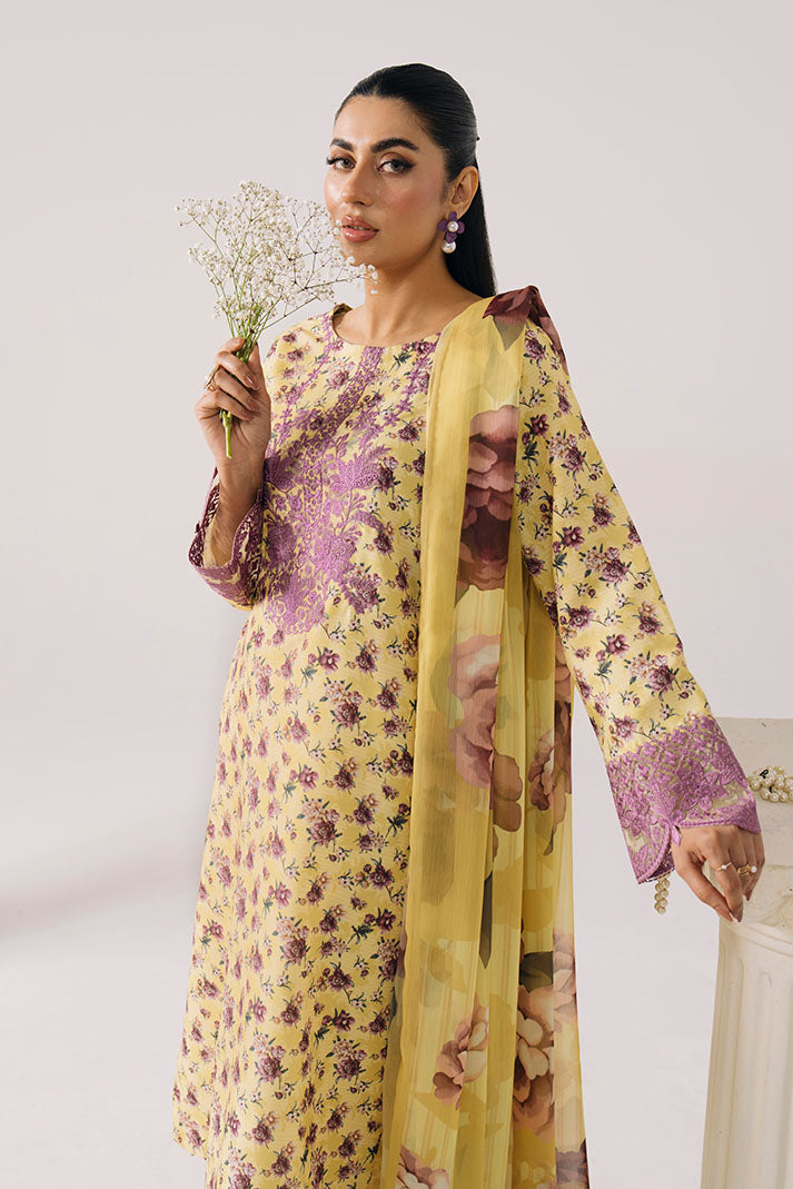 Crafted in printed lawn, the shirt features elegant embroidery for a timeless finish. The printed chiffon dupatta adds lightness and charm, paired with a printed lawn trouser for everyday comfort.