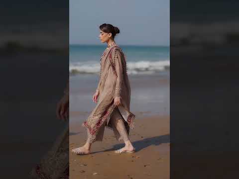 This elegant beige embroidered lawn dress blends warm neutral tones with rich maroon accents for a timeless look. The embroidered lawn shirt is paired with a luxurious combination of chiffon and raw silk dupatta, adding depth and texture to the ensemble. Finished with detailed organza borders and a breathable cotton trouser, this luxury beige lawn suit is perfect for women who prefer classic sophistication. Ideal for festive gatherings, daytime events, and refined summer wear.