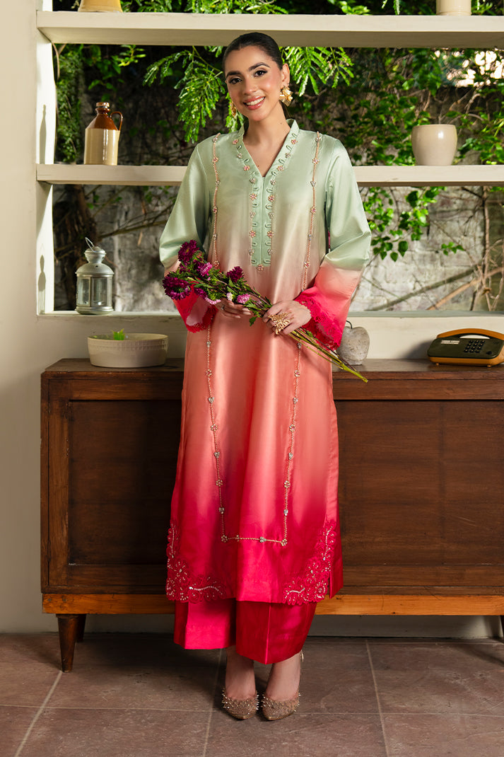 Embroidered & Printed shamooz silk shirt embellished with handmade.
